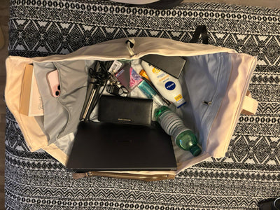 Die Tasche ist groß genug, um einen 13-Zoll-Laptop, Notebooks, Kosmetika und weitere Alltagsgegenstände aufzunehmen. Sie besteht aus leichtem Nylon- und Oxford-Gewebe, wodurch sie angenehm leicht zu tragen ist. Zusätzlich kann die Tasche bei Bedarf ausgeweitet werden, um noch mehr Stauraum zu bieten, wie auf den Produktbildern zu sehen ist.